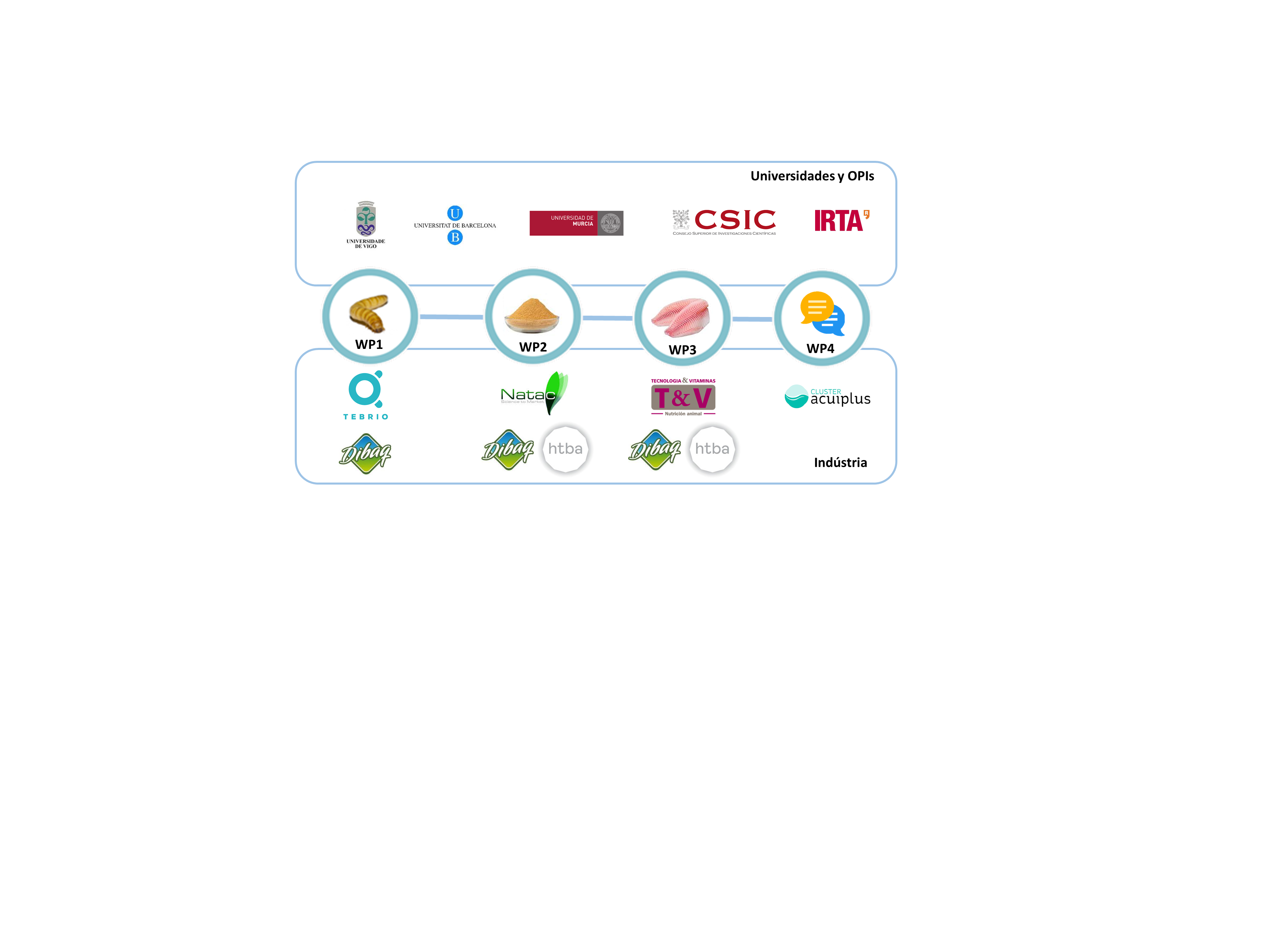 Las actuaciones comprendidas en este paquete buscarán garantizar la adecuada difusión de los resultados del proyecto para entre los actores implicados y la sociedad, promoviendo la interacción, transferencia de conocimiento y colaboración entre stakeholders. Este paquete de trabajo también planificará la estrategia de aplicación de los productos resultantes en el mercado, su aplicación real en el sector y el compromiso público por contribuir a una mejor salud y bienestar de las especies acuícolas a través de una alimentación de base sostenible y en alineamiento con el concepto de economía circular.
